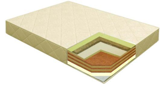 Universal non-spring mattress with high-quality orthopaedic features. It consists of several layers from different materials – latex, HR foam and coconut fibre plates. Air channels in the latex layer and the high air circulation of the natural coconut fibre provide good ventilation and optimal temperatures. This mattress model is very durable and efficient. Memory Foam layer substantially improves the quality of the sleep and increases the orthopaedic features of the mattress. Double-sided orthopaedic mattress.